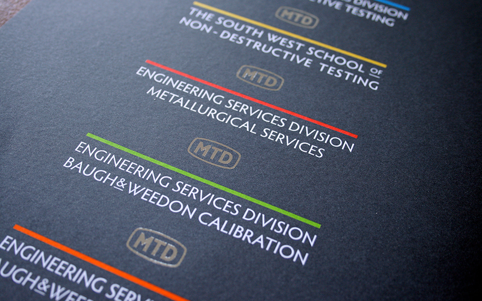 I was initially commissioned to create a brand style for The South West School of Non-Destructive Testing a division of MTD. The subsequent success of this project and the positive effect on the business lead to the whole of the engineering division adopting a compatible style. The school brand has been utilised on training materials, exhibitions stands, promotional materials and advertising. A website is currently under development as are various other projects across the engineering division.